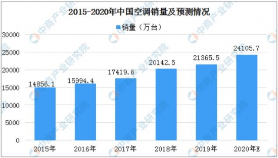 從銷量來看:從2016年至今我國空調(diào)銷售保持了持續(xù)上升的發(fā)展趨勢(shì),2019年國內(nèi)空調(diào)總銷量21365.5萬臺(tái),相比2018年的20142.5萬臺(tái)增長了6.07%,預(yù)計(jì)2020年我國空調(diào)總銷量將達(dá)24105.7萬臺(tái)。